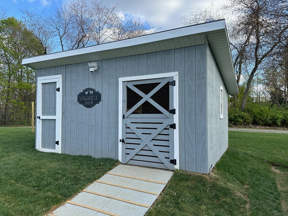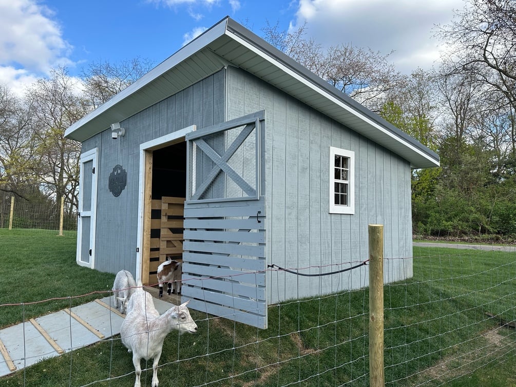 The roof pitch is 2:12. The storage area is 4x12. The goat area is 12x12.