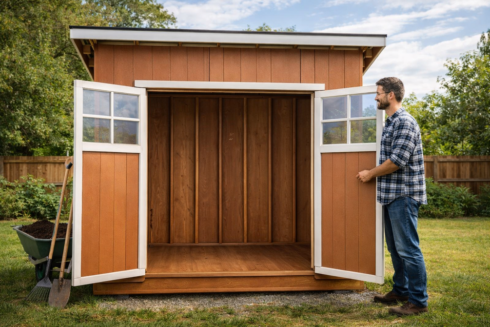 This step by step woodworking project is about free 4x10 lean to garden shed plans. You can build this storage shed with a front door and lean to roof, using my plans and basic tools / materials. The double 6 ft shed doors have windows, so you get plenty of light inside the shed.