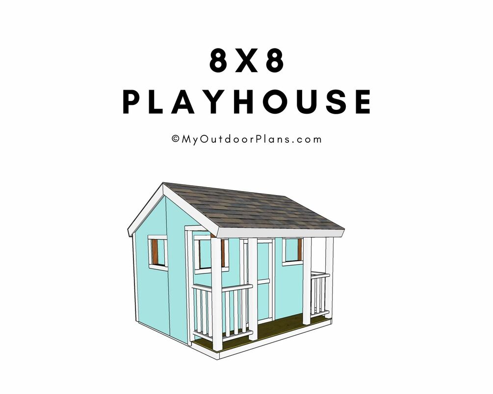 You'll get a PDF with step by step diagrams, instructions and a Full Cut and Shopping lists, to build a 8x8 playhouse. Measurements are in imperial, not metric.