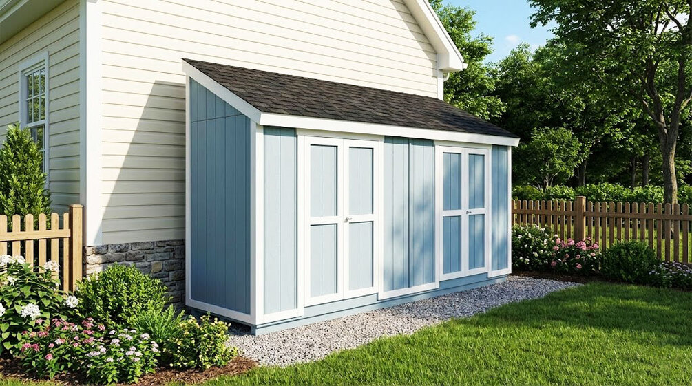 This step by step woodworking project is about 4x16 lean to shed plans. You can build this storage shed with 2 double shed doors, if you want to store things in a narrow backyard space.