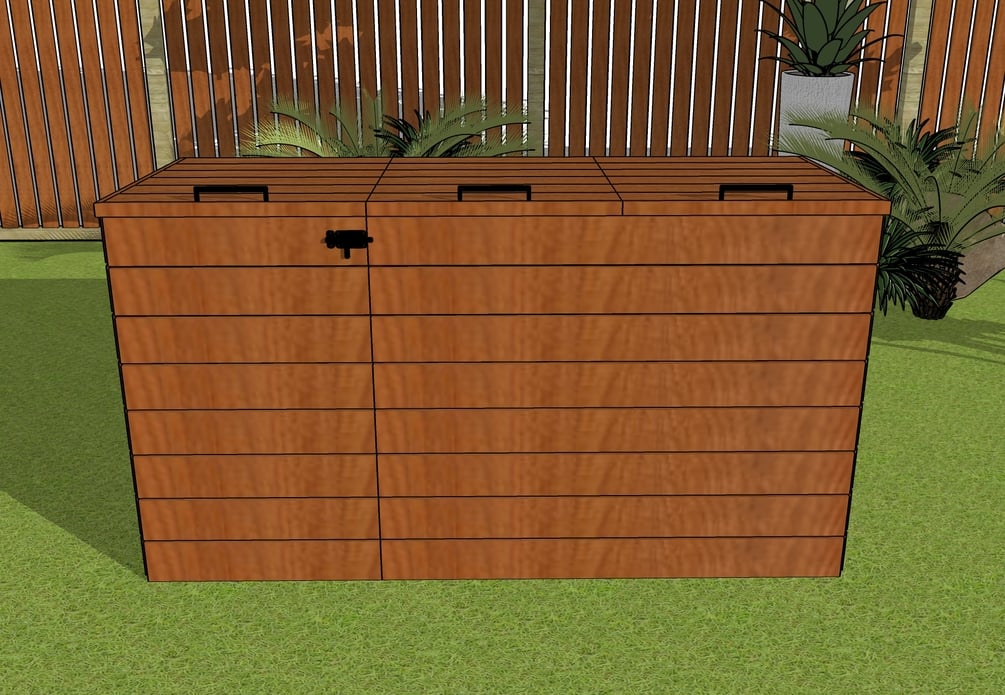 If you want to build a beautiful trash bin shed, these plans will help you get the job done. This shed is simple to build and it features compartments for 3 bins. It has 3 lids and two doors to the front, so you can collect the trash selectively.