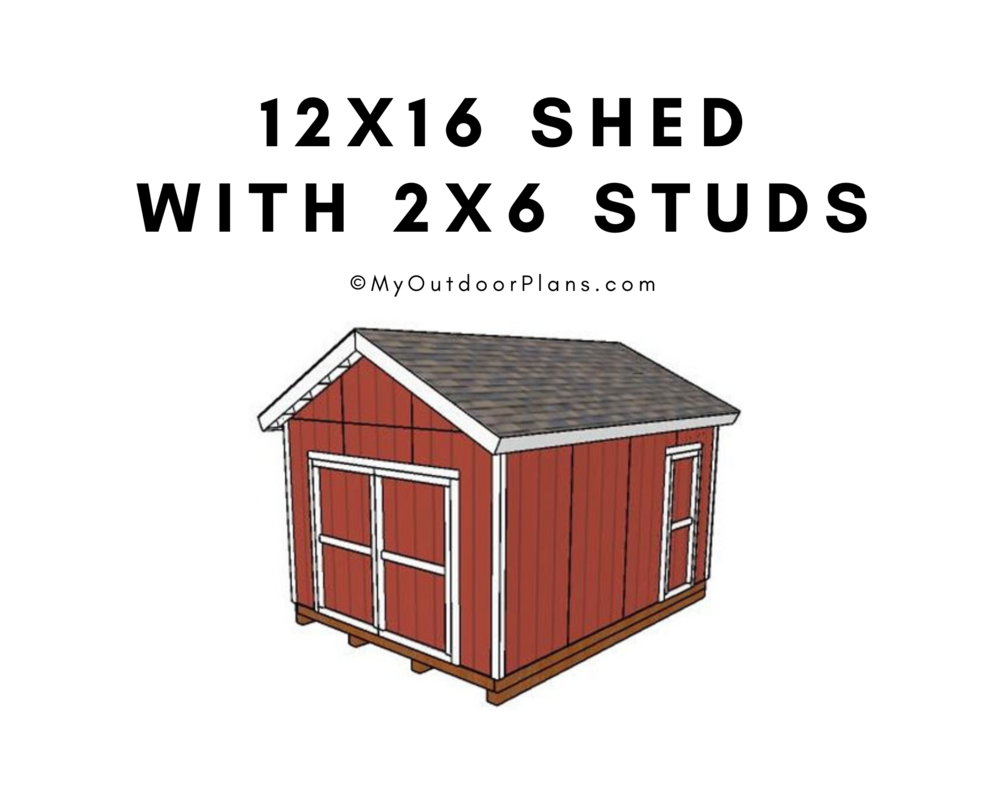 This step by step diy project is about 12x16 gable shed with 2x6 studs plans. I have designed this large storage shed with 2x6 studs so it can be very durable and sturdy enough for any utilization. This shed features double 8 ft doors to the front and a side door, for easy access. The roof pitch is 6:12.