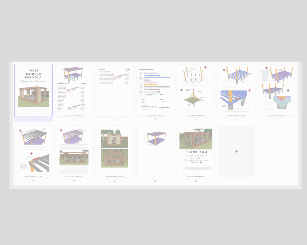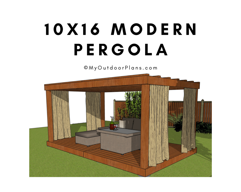 This step by step diy woodworking project is about 10x16 free standing pergola plans. This rectangular wood pergola has a modern design and it is budget friendly, and it features 4 posts with a footprint base of 10 ft x 16 ft ft.