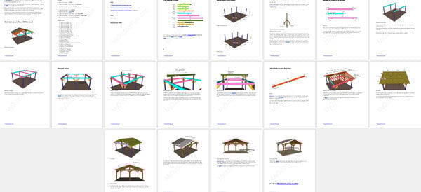 If you want to build a beautiful 20x16 outdoor pavilion with gable roof, these premium plans with step by step 3D diagrams and instructions will help you save time, money and get the job done in a week. This large wooden pavilion is built on a sturdy 6x6 and 6x10 framing, with 2x6 rafters every 16" on center.