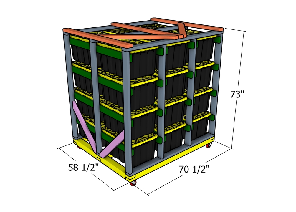 It’s recommended to purchase the storage totes prior to starting the build so you can verify dimensions and make any necessary adjustments to the plans for a precise fit.