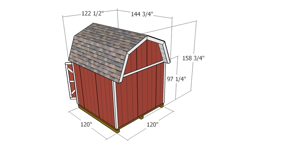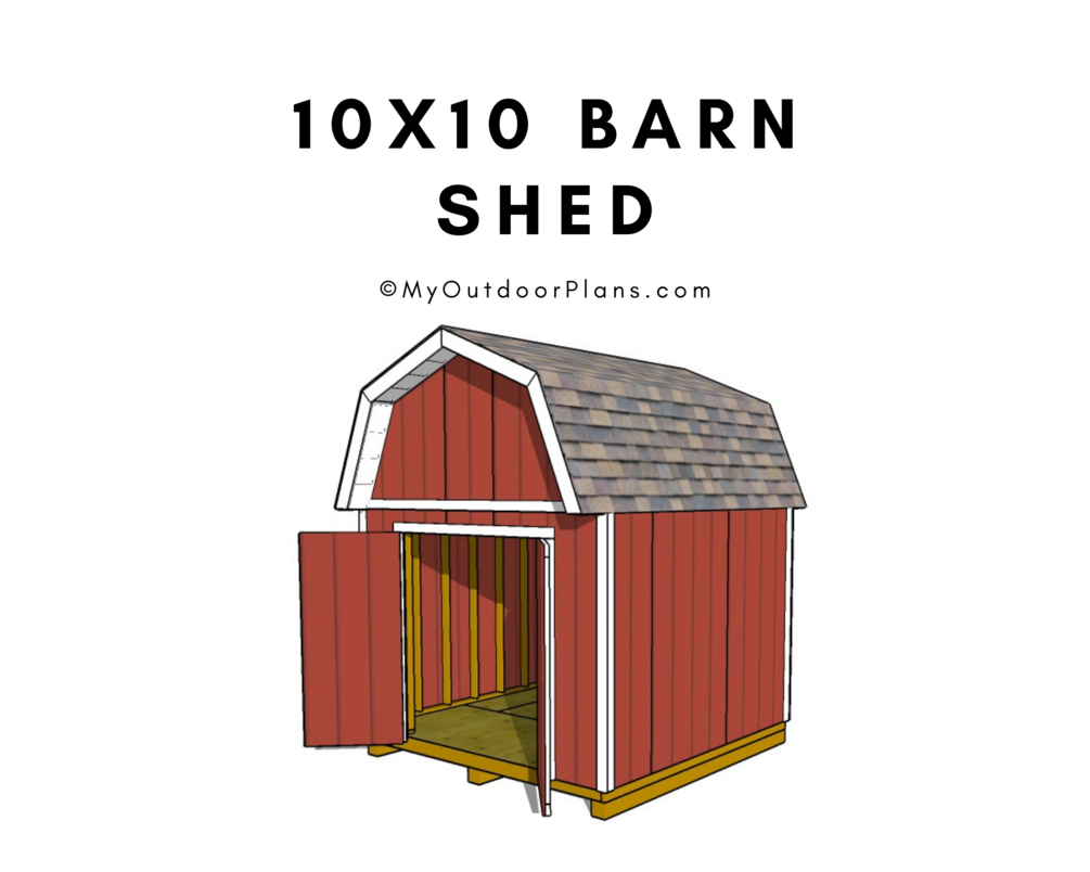 This step by step diy project is about 10x10 barn shed plans. I have designed this shed with a gambrel roof so you can store you items and protect them from the elements. This shed also features a nice loft, so you can enhance the storage space even more. The shed has double 6 ft doors.