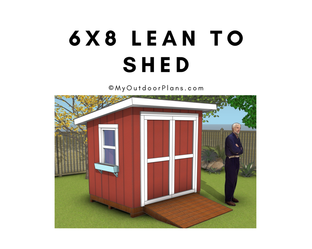 Build your own durable and stylish 6x8 lean-to shed roof with this easy-to-follow plan! Featuring a 2/12 pitch for extra overhead space, double 6 ft front doors, a 24"x36" side window, this plan includes a complete materials list, detailed cut list, step-by-step instructions, and clear diagrams to guide you every step of the way.