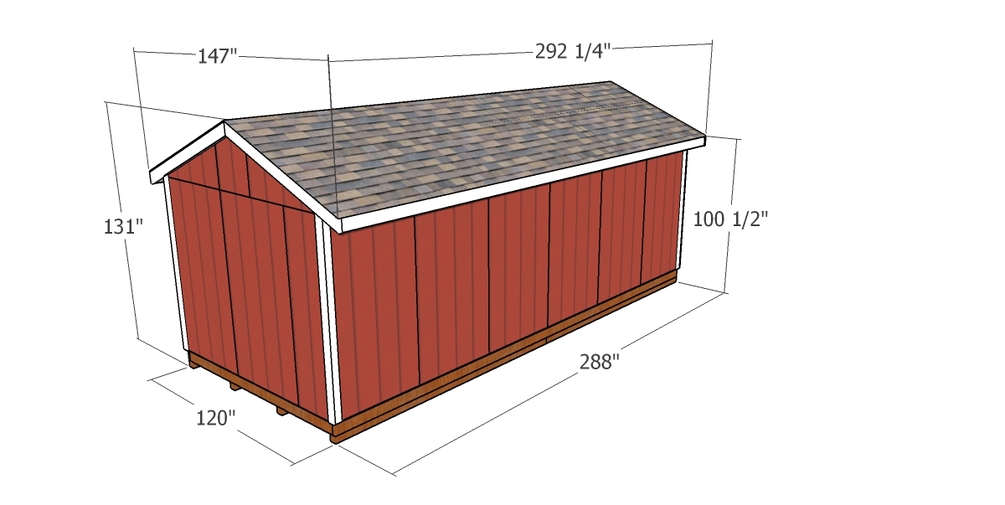 This step by step diy project is about 10x24 gable shed plans. I have designed this large shed with a gable roof, so you can organize all you tools around the backyard. This shed features double front doors for an easy access and a side door with a 36"x36" window, so you can have light inside. Make sure you read the local codes and make adjustments if necessary. Roof pitch is 5:12.