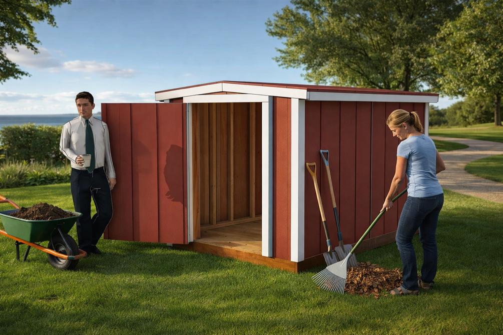 Build your own 6x8 gable shed with these detailed DIY plans. This compact shed is designed for efficient storage, featuring a low six-foot height that maximizes floor space while keeping construction simple. The gable roof with a durable metal covering ensures reliable protection from the elements, and the sturdy 2x4 framing with T1-11 siding provides long-lasting strength.