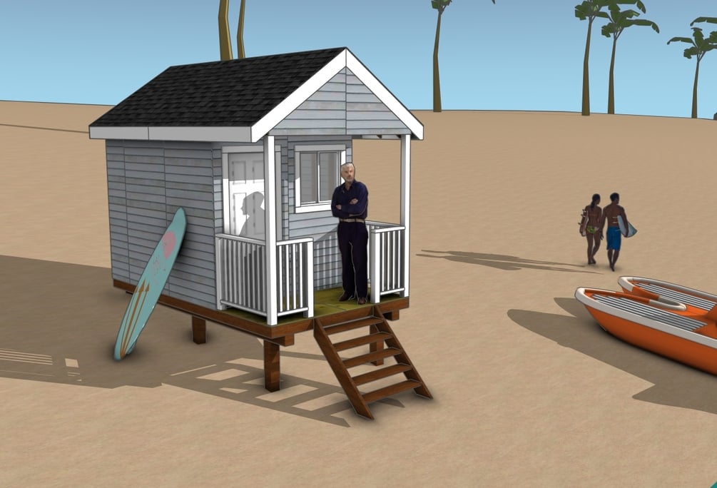 Bring the beach to your backyard with this 8x14 beach hut plan, complete with a covered front porch. Designed with simplicity and style in mind, this project is built on 6x6 posts with a strong 2x6 floor frame and T1-11 siding for a coastal look that never goes out of style. The gable roof gives the structure a classic profile, while the cozy porch adds the perfect spot to relax, decorate, or just enjoy the view.