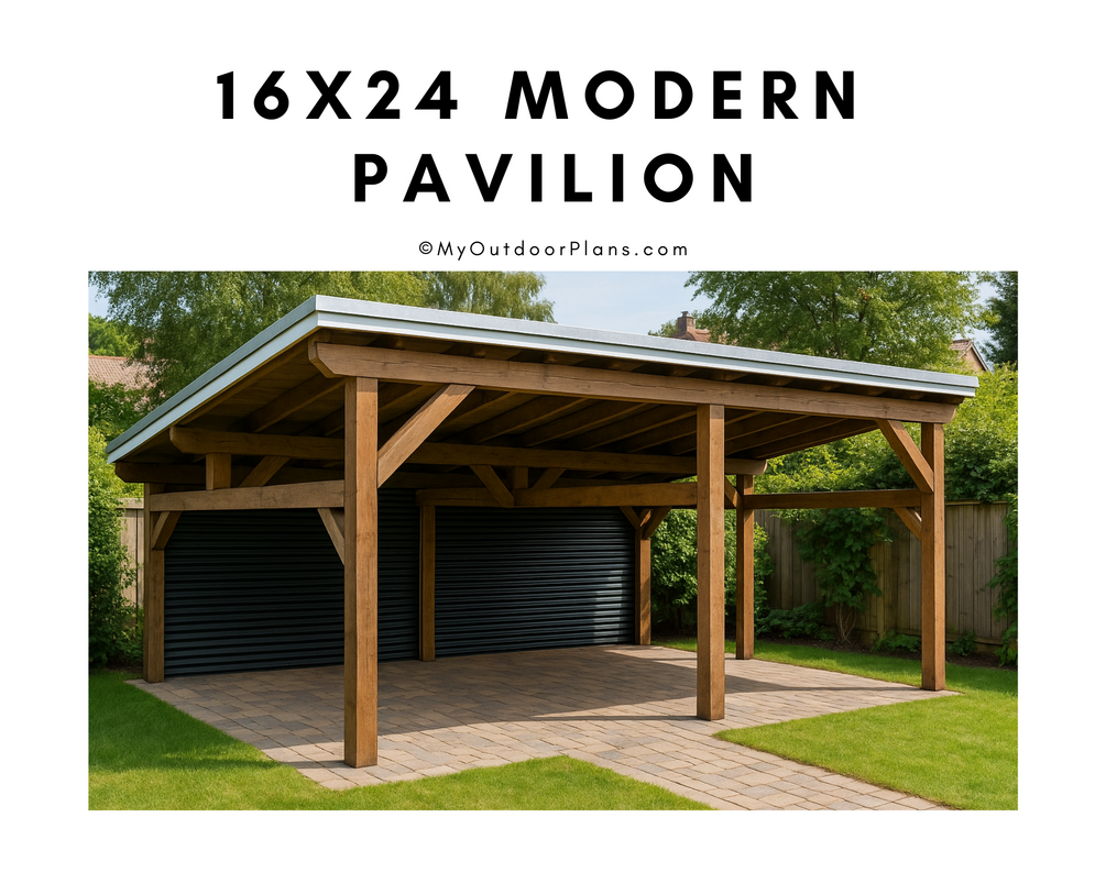 Build a clean, modern 16x24 pavilion with these easy-to-follow DIY plans. Every step is laid out with clear instructions, detailed diagrams, a full cut list, and a streamlined shopping list so you can gather materials quickly and start building with confidence.