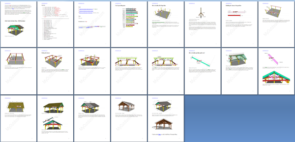 If you want to build a beautiful 20x24 outdoor pavilion, these premium plans with step by step 3D diagrams and instructions will help you save time, money and get the job done in a weekend. This pavilion is built on a sturdy 6x6, 6x8 framing, with 2x6 rafters every 16" on center.