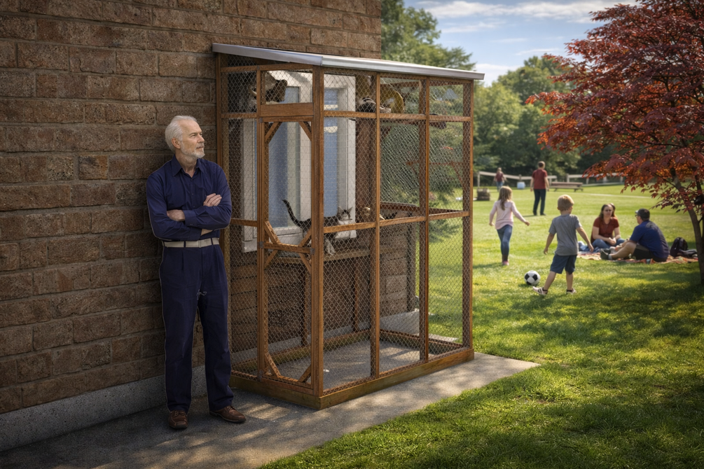 Build your own 4x6 lean-to catio with this easy-to-follow digital plan! Designed to attach directly to your home, this compact outdoor enclosure gives your cats a safe, weather-protected space to explore and relax. The plan includes step-by-step instructions, a full materials list, cut diagrams, and pro tips to help DIYers of all skill levels bring it to life. Whether you're creating a cozy perch or a full-on feline playground, this catio is the perfect weekend project to keep your cats happy and secure.