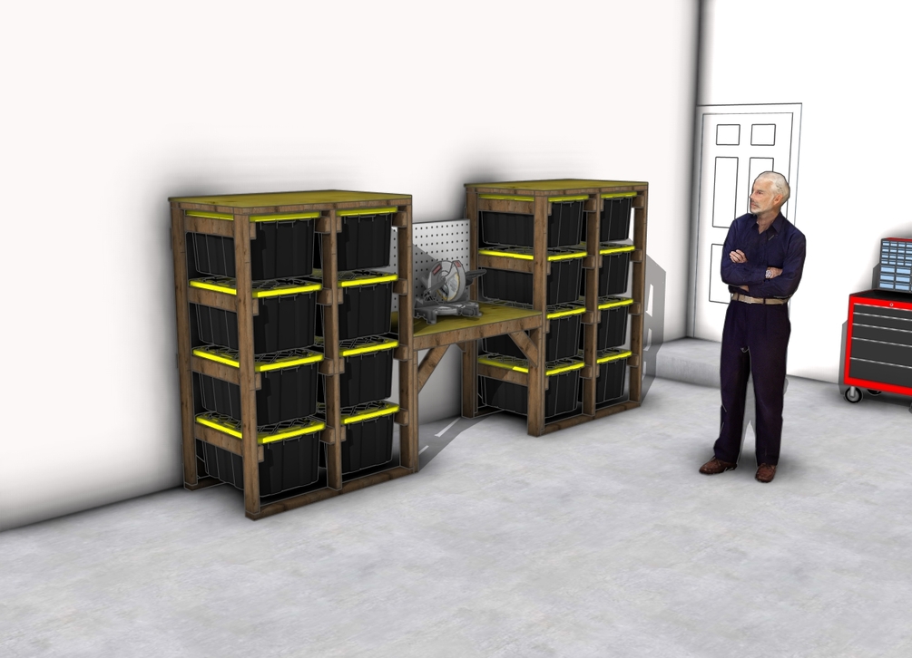 Elevate your workspace with this versatile Miter Saw Station and Storage Unit! Perfect for DIY enthusiasts and woodworking pros, this detailed plan guides you step-by-step to build a sturdy, functional workstation. Designed to hold up to 16 large 27-gallon totes and featuring a pegboard for tool organization, this project is ideal for maximizing storage and efficiency in your workshop or garage.