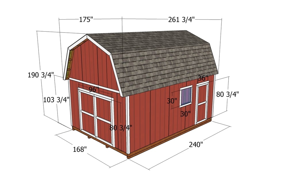 This step by step diy project is about 14x20 gambrel shed plans. I have designed this large barn shed so you can store all your tools, bikes, furniture and other items. This shed has double front doors, a side door and a side window. You can easily make modifications to my plans, so the shed suits your needs and tastes.