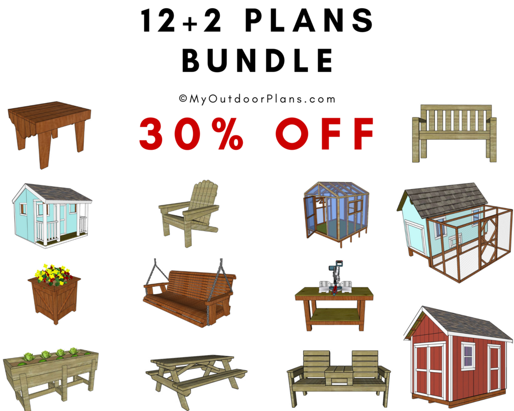 Start building projects for your backyard with this collection of 12+2 woodworking plans. Get 12+2 plans to build outdoor benches, planters, tables, a garden shed, a playhouse, a chicken coop and a greenhouse. You'll save 30% off the normal price ($74.99 if you get the plans separately) by buying this bundle!