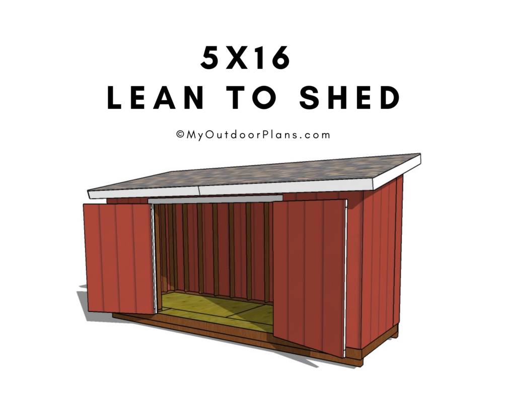 This step by step diy project is about 5x16 lean to shed plans. This is a small shed that is ideal for narrow gardens. You will probably like the sturdy 2x4 wall framing and the lean to shaped roof, making it ideal for building it next to the property line. This shed features 8' double front doors and a lean to roof. Please read the local codes before starting the project and make the necessary modifications to comply with the legal regulations.