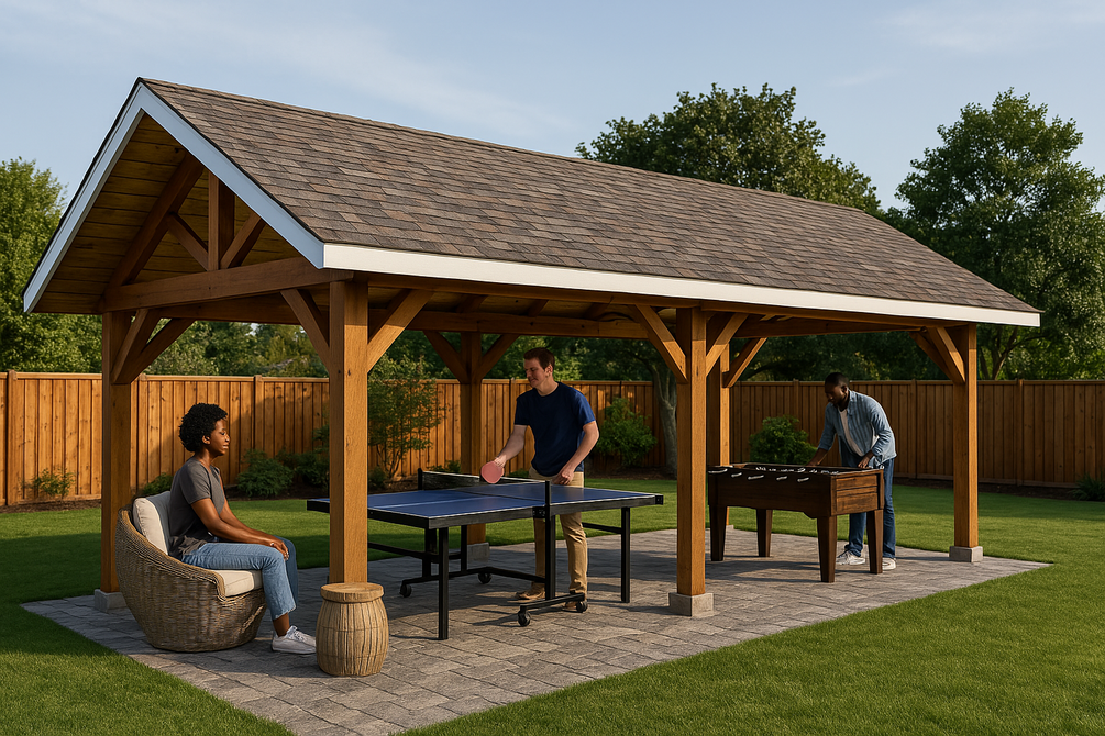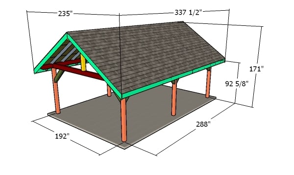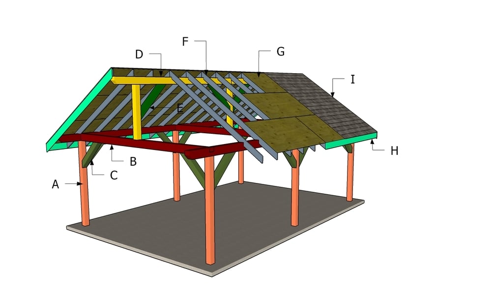 If you want to build a beautiful 16x24 outdoor gable pavilion, these premium plans with step by step 3D diagrams and instructions will help you save time, money and get the job done in a weekend. This pavilion is built on a sturdy 6x6 framing, with 2x6 rafters every 24" on center.
