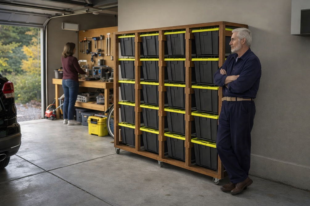 Organize your garage, workshop, or storage space with this DIY tote storage rack plan! Designed to hold up to 15 standard 27-gallon totes, this sturdy rack is easy to build and perfect for keeping your items neat and accessible. The detailed plan includes step-by-step instructions, cutting diagrams, and a complete shopping list to guide you through the process. Whether you’re a beginner or an experienced DIYer, this project is simple, cost-effective, and customizable to fit your space. Build your own storage solution today!