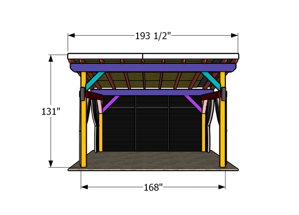 The low 2:12 roof pitch and fully open sides result in a bright, spacious structure that works just as well for outdoor dining as it does for relaxing or entertaining guests. Build it with pressure-treated lumber to stay on budget, or step up to cedar or redwood for a refined look that weathers gracefully over time.