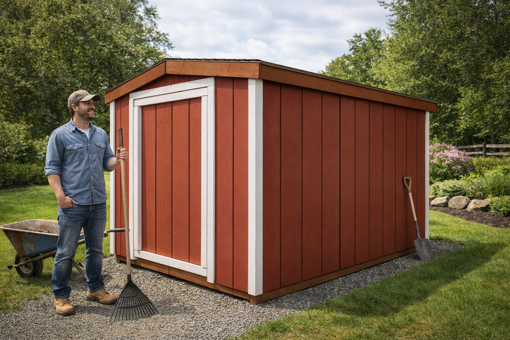 This step by step diy project is about diy 8x10 short shed plans. This shed is built on a 2x4 framing and it features a gable roof and a large front door.