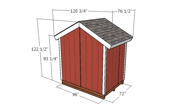 This step by step project is about 8x6 gable shed plans. I have designed this compact storage shed with front door, so you can shelter your tools and other items in a good order. This shed is sturdy and easy to build. Take a look over the local building codes before starting the project, as you need to comply with the legal requirements and in some cases even get a permit. Roof pitch is 6:12.