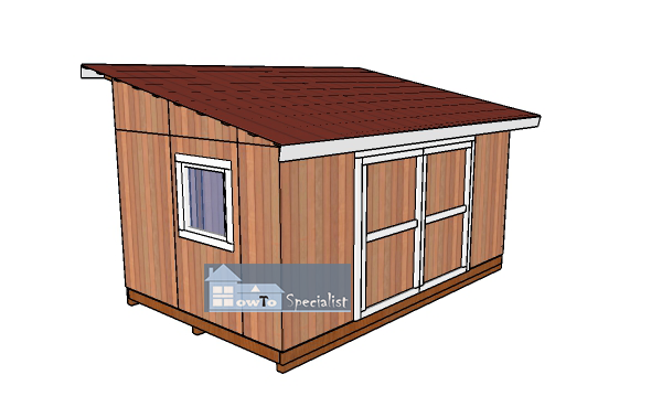 This step by step woodworking project is about 10x16 lean to backyard shed plans with a 3:12 pitch. This is a large shed that features double 8 ft doors to the front and a 32"x32" window on each side. In addition, this storage shed has double 6 ft doors on the side. Metal roof*